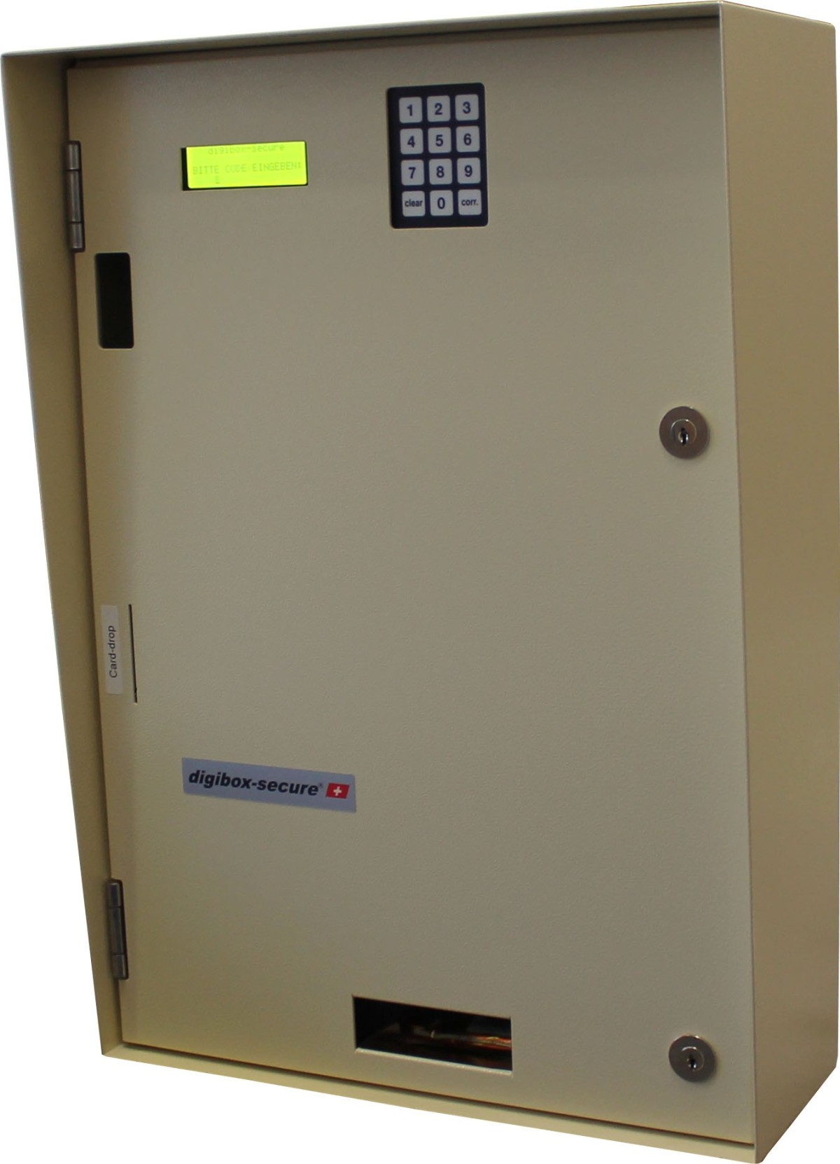 Das digitale Schlüsselverwaltungssystem digibox RX38 bietet Platz für bis zu 38 Schlüssel, Chip- oder Magnetkarten mit einem Gewicht von unter 160 Gramm pro Haken. Die intelligente und sichere Schlüsselbox überzeugt durch eine besonders einfache Programmierung und eine klar strukturierte Menüführung (Schlüsselcode, Datum/Uhrzeit, Sperrzeiten, individuelle Begrüssungstexte in 4 Sprachen wählbar.